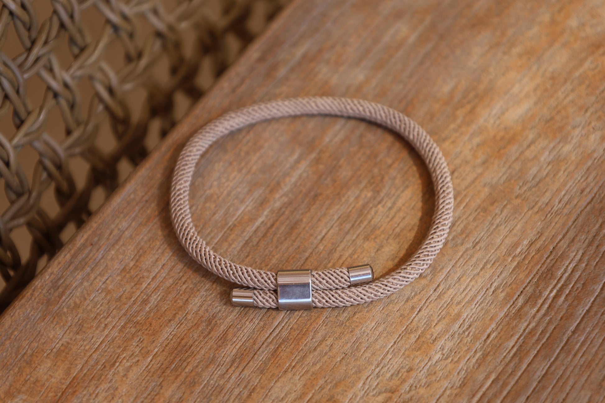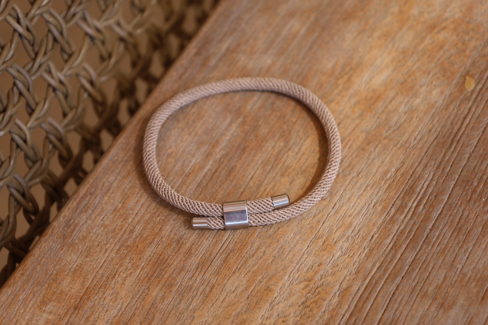 Bracelet homme lien épais beige avec pendentif argent.