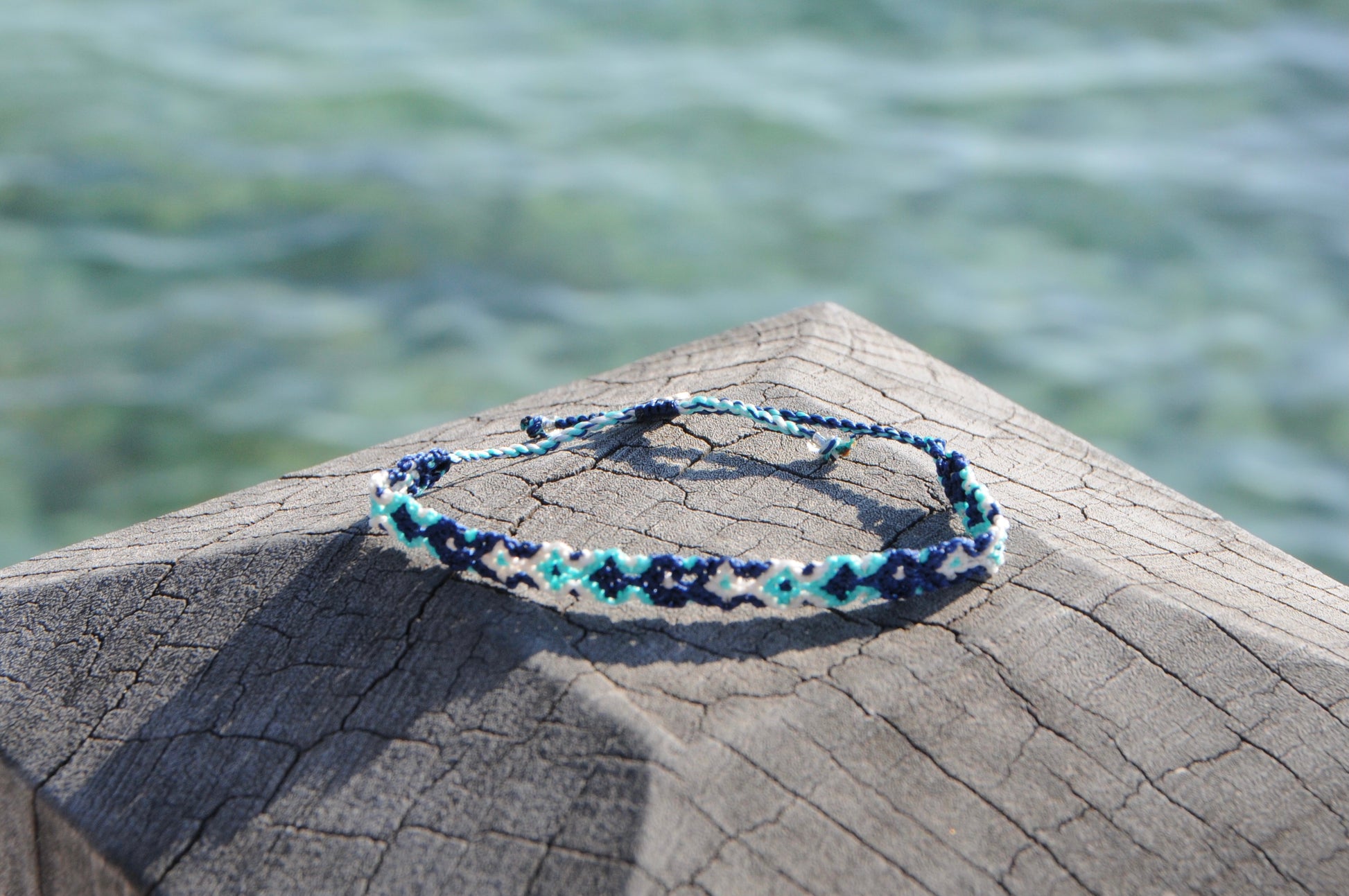 Bracelet homme tissé bleu marine, bleu turquoise et gris. Fabriqué à la main.