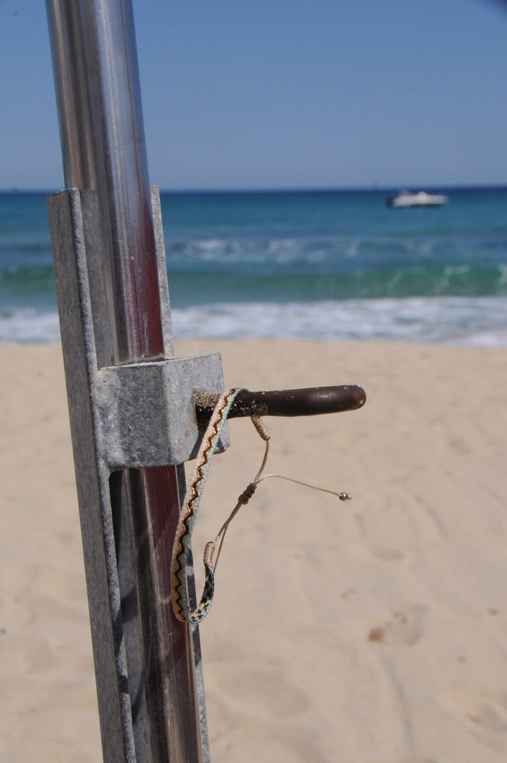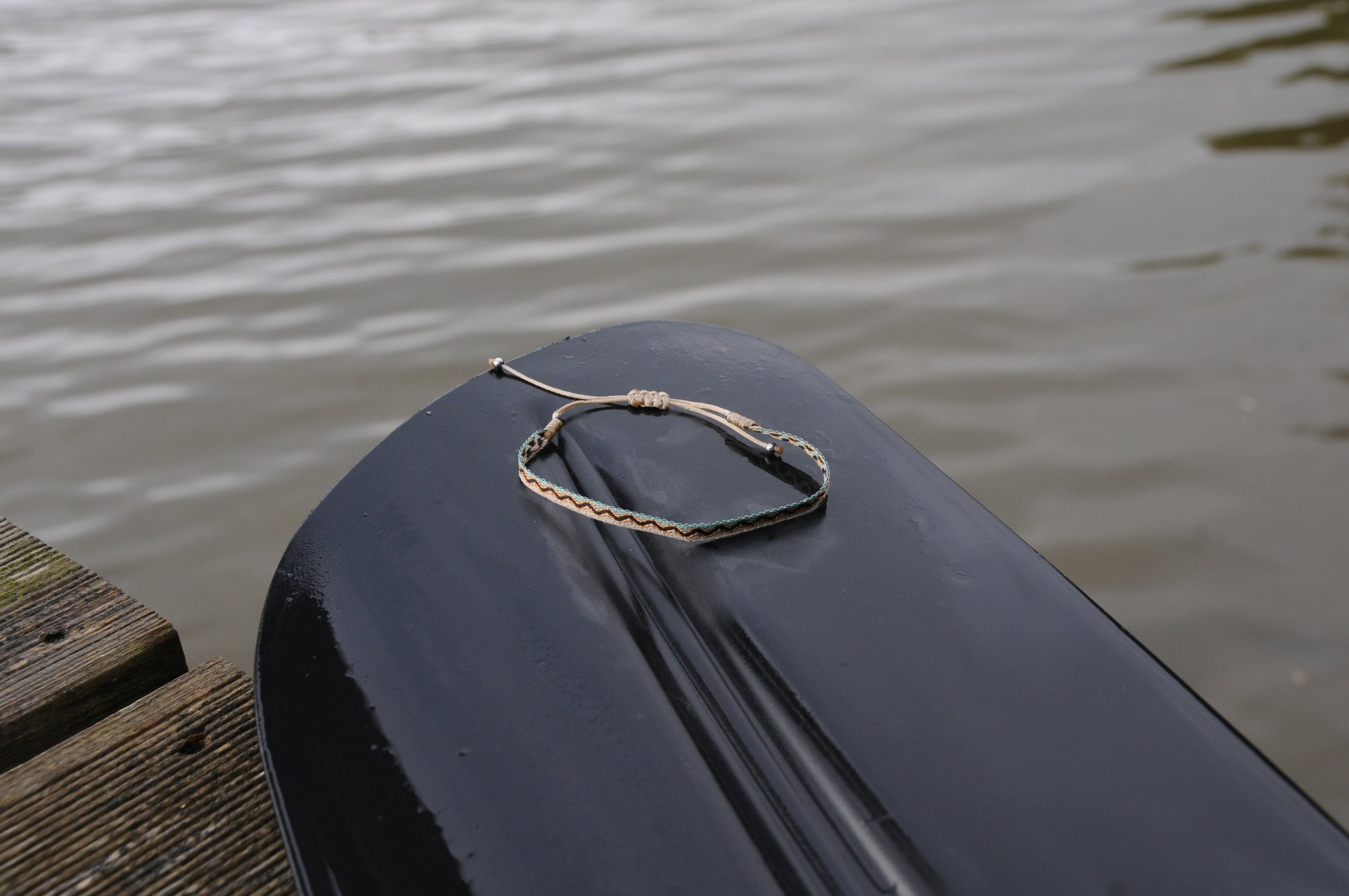 Bracelet homme imprimé vague beige, bleu avec ligne noire et détails cuivre