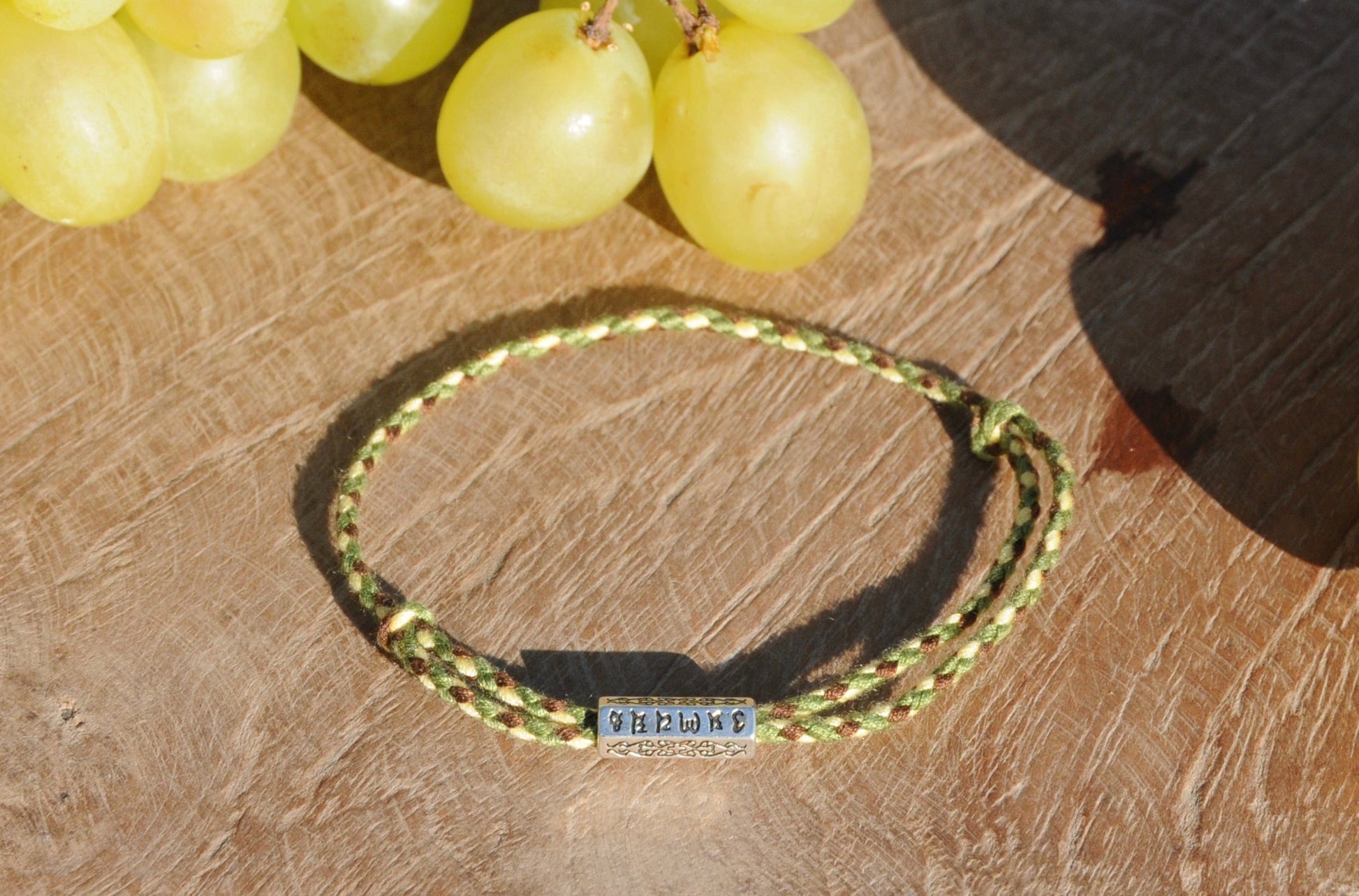 Dimension : Bracelet ajustable grâce à ses noeuds coulissants.