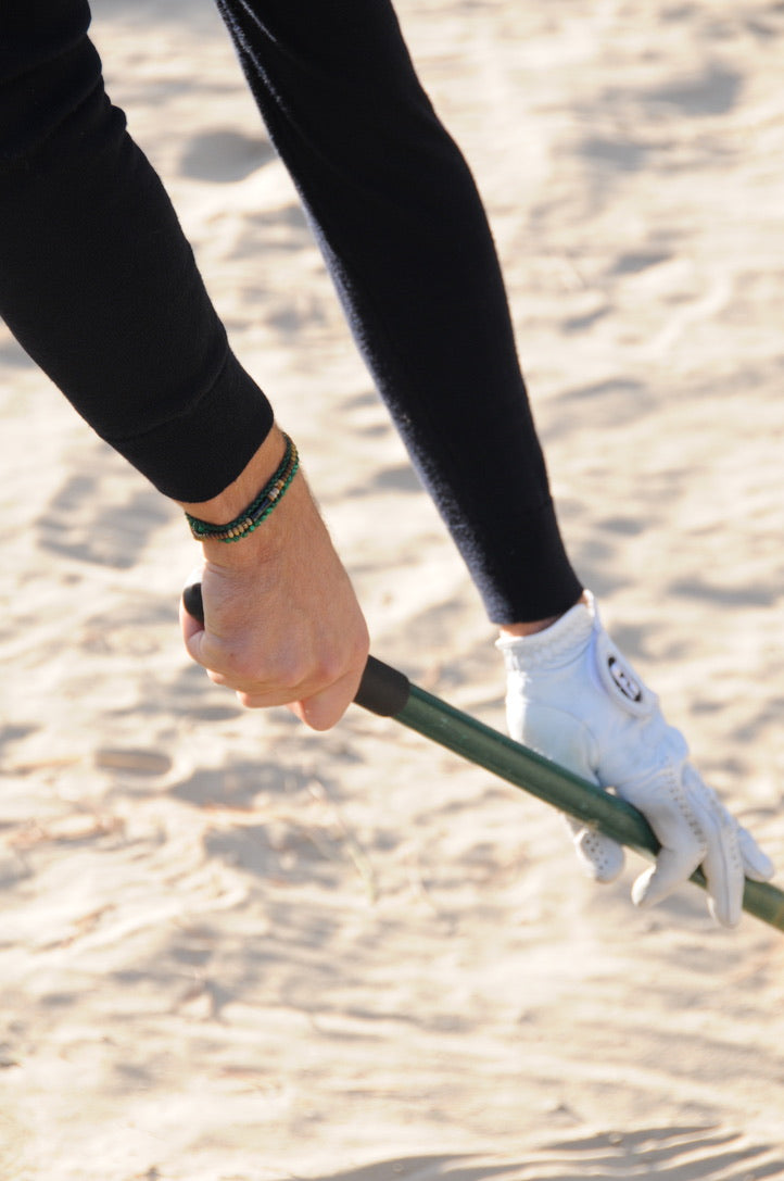 Bracelet homme en corde tressée vert sapin avec touches multicolores.