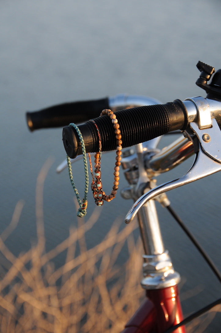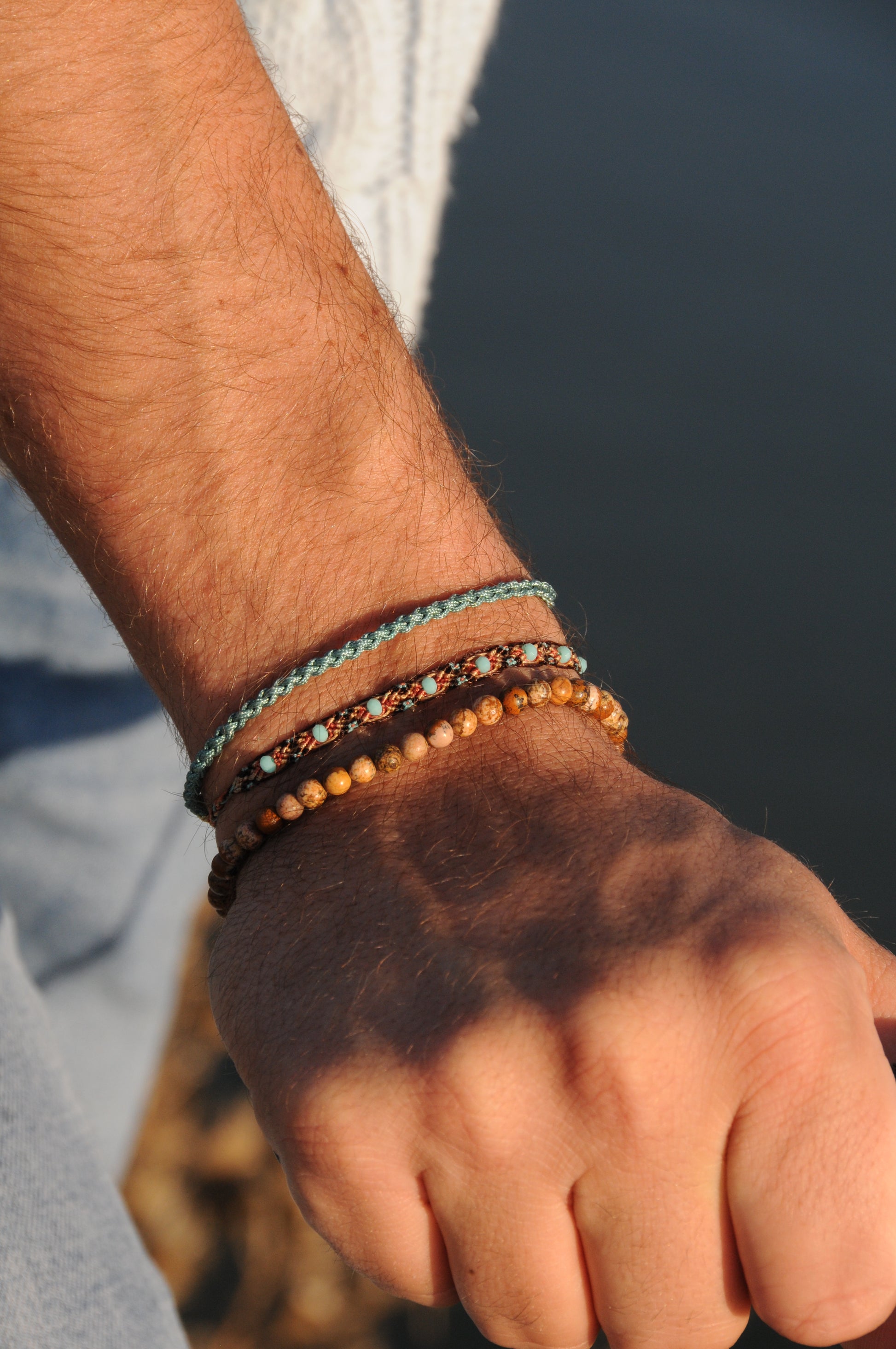 Bracelet homme en corde tressée bleu gris avec touches multicolores.