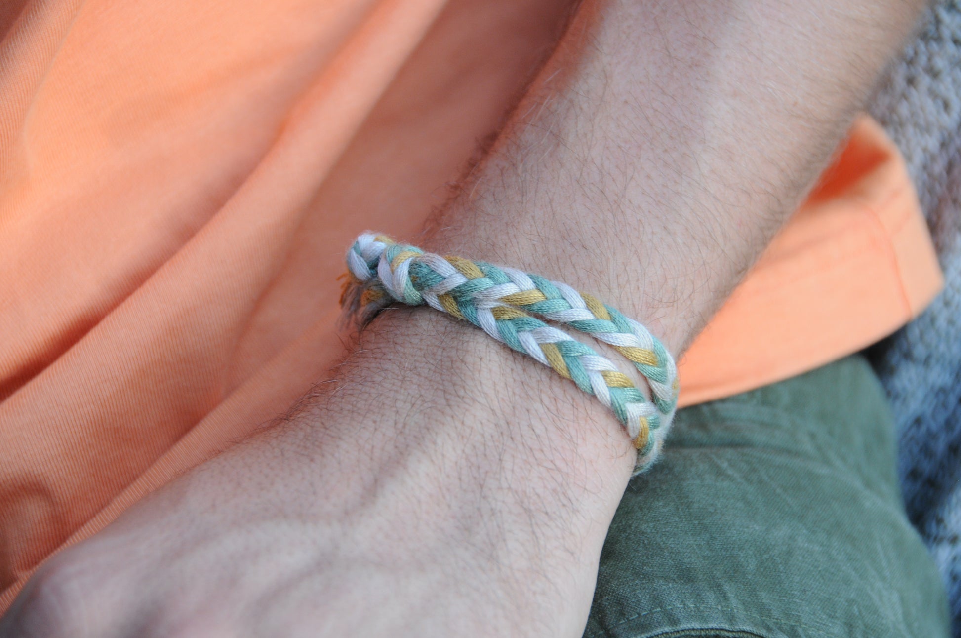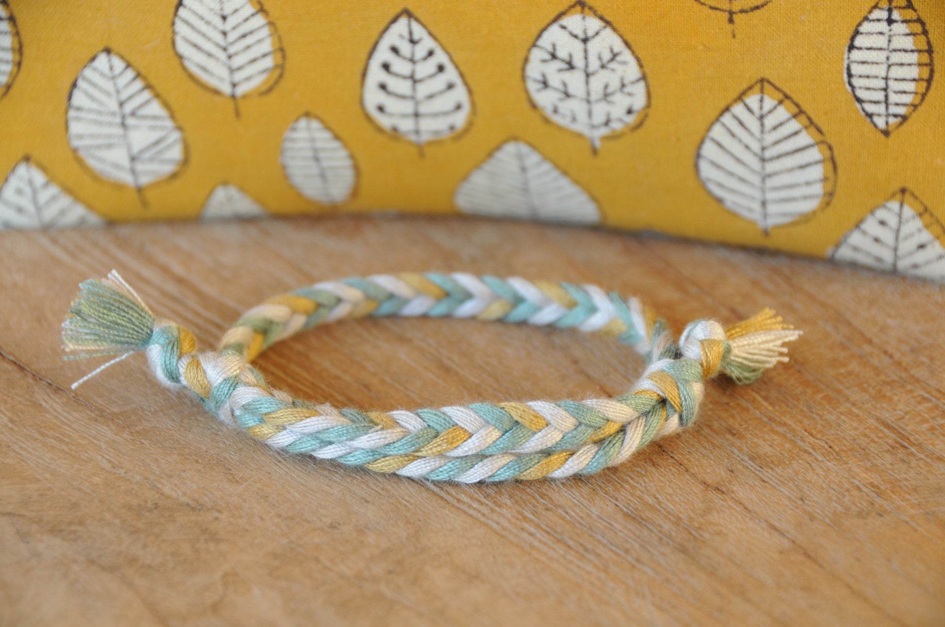 Bracelet corde tressé épais beige, moutarde et vert d'eau