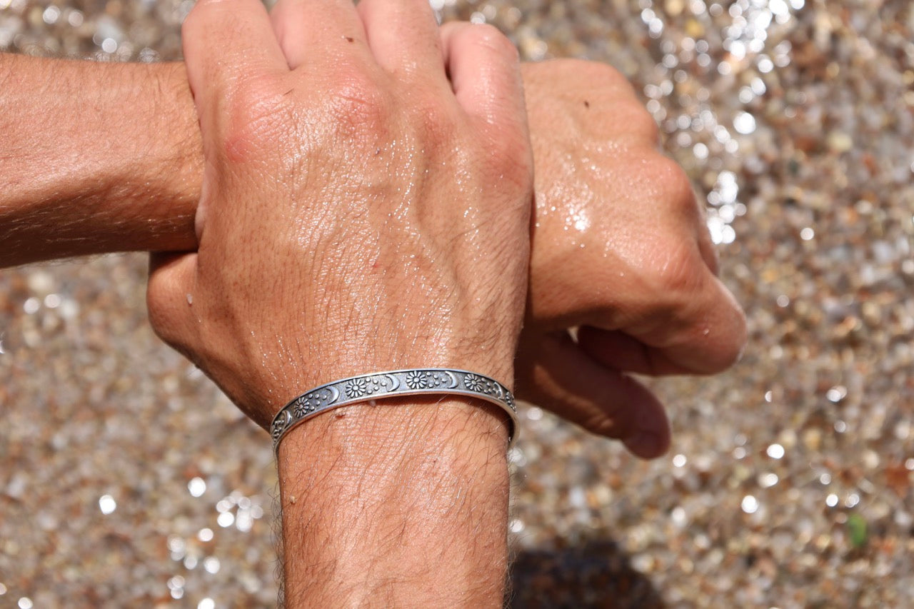 Jonc homme avec motifs soleil et lune.