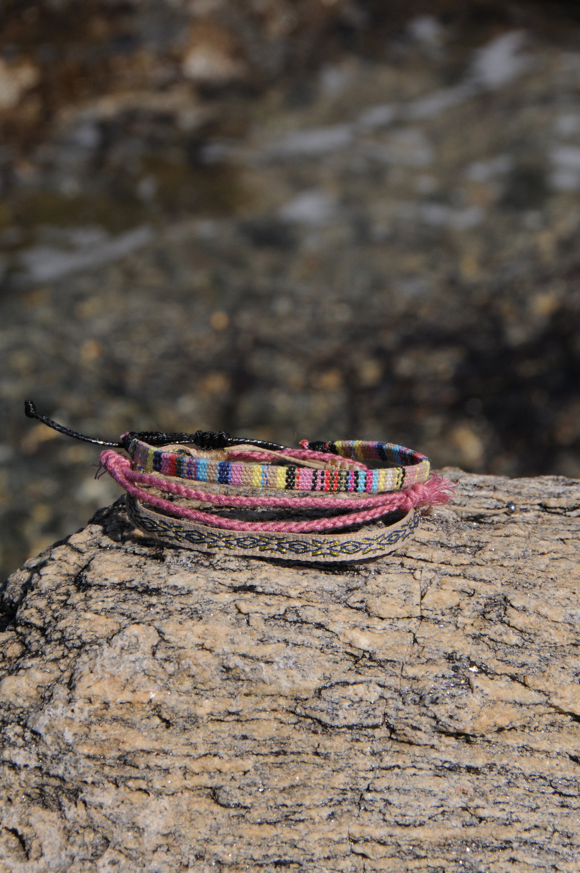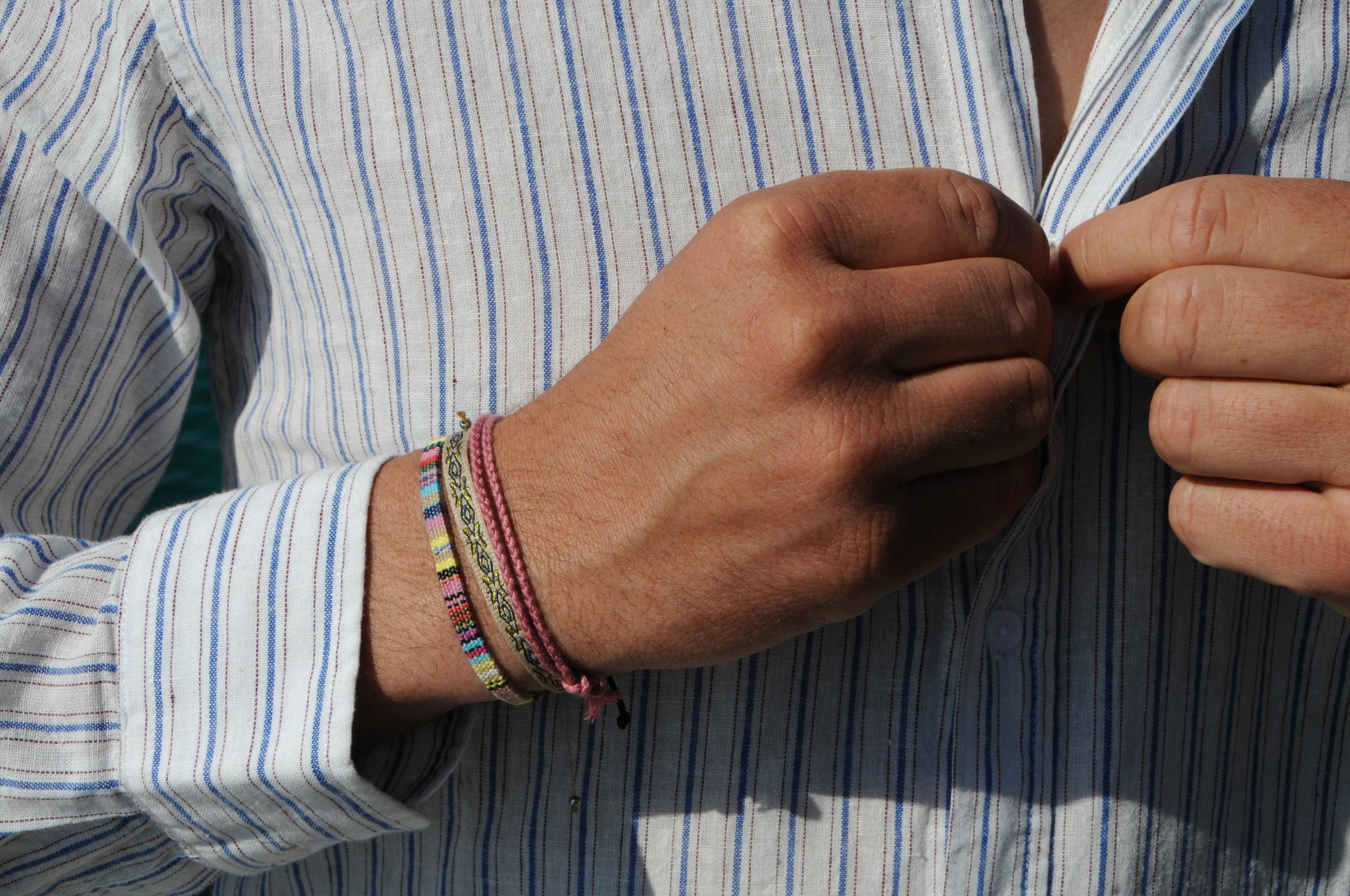 - Figuier, un bracelet péruvien beige et multicolore.