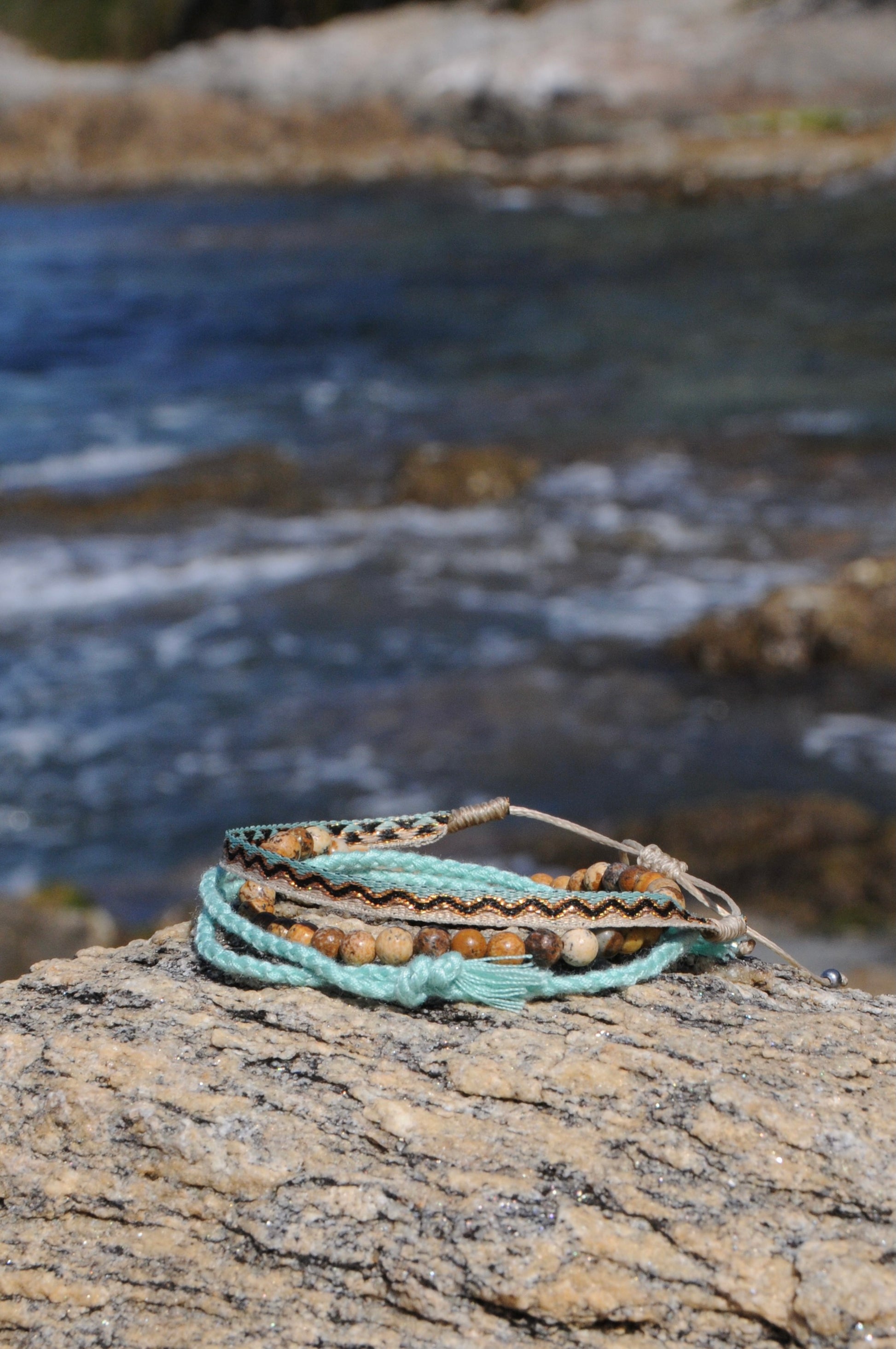 - Bambou, un bracelet corde tressé turquoise.