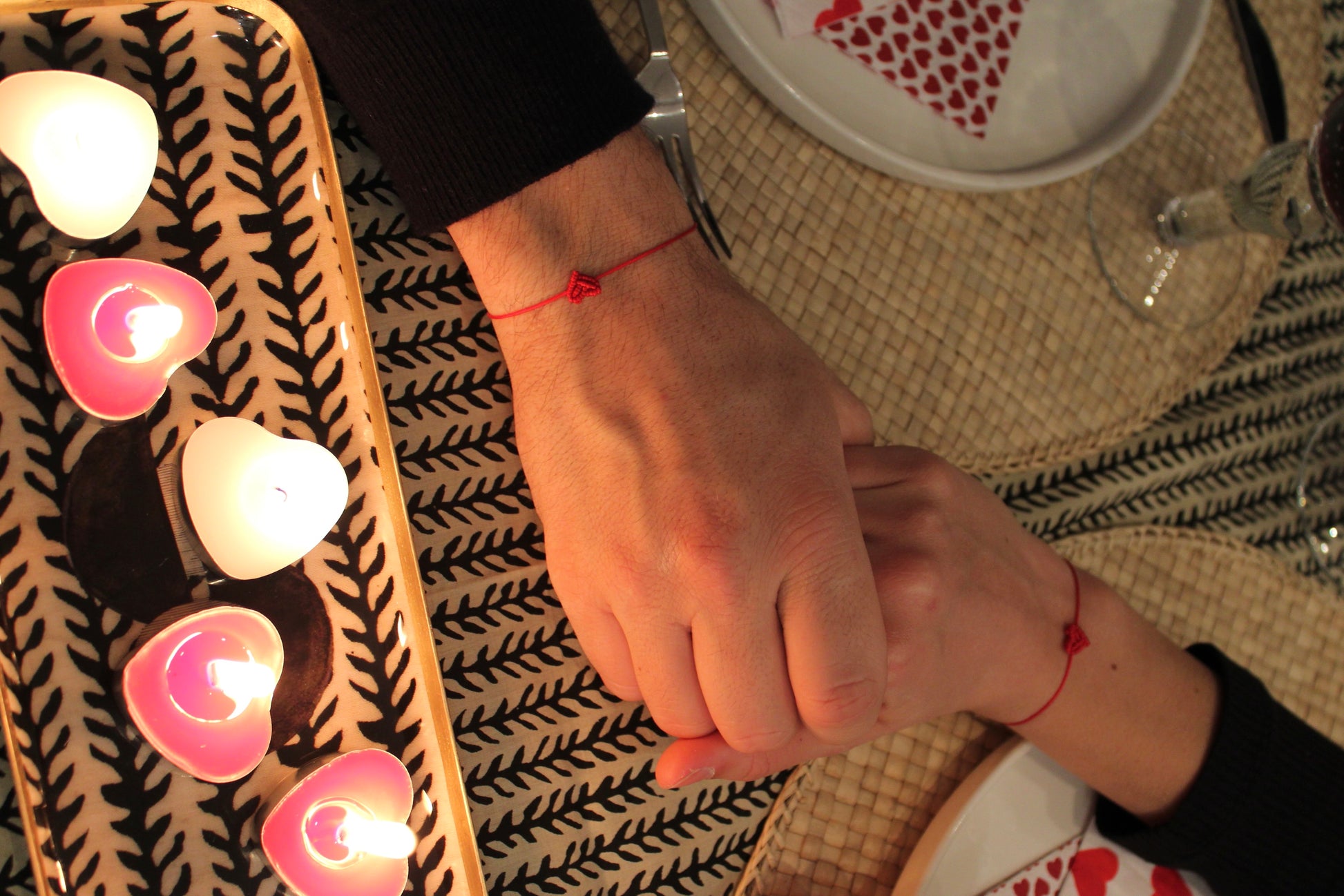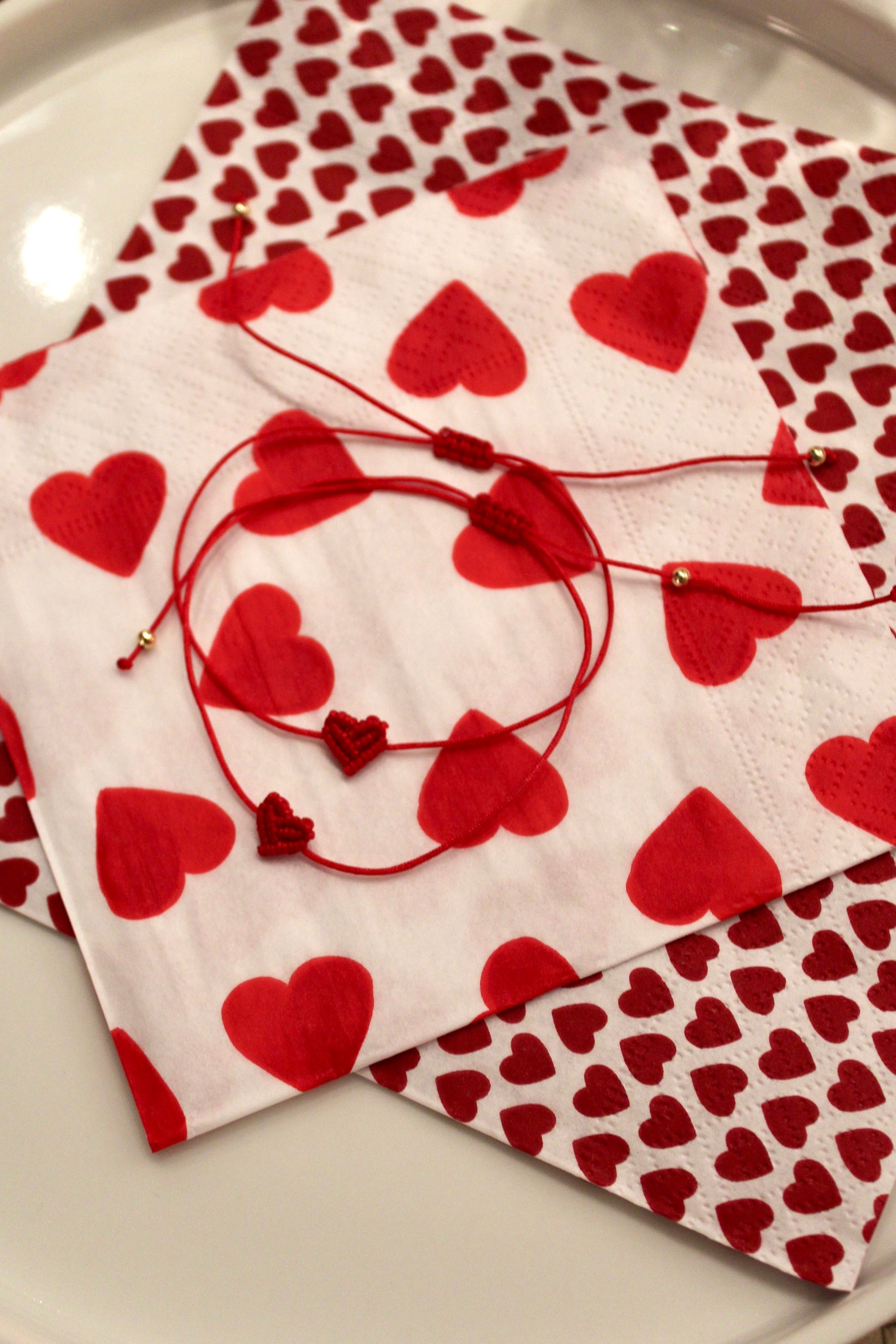 Duo de bracelets Iris, bracelets rouges macramé coeur.